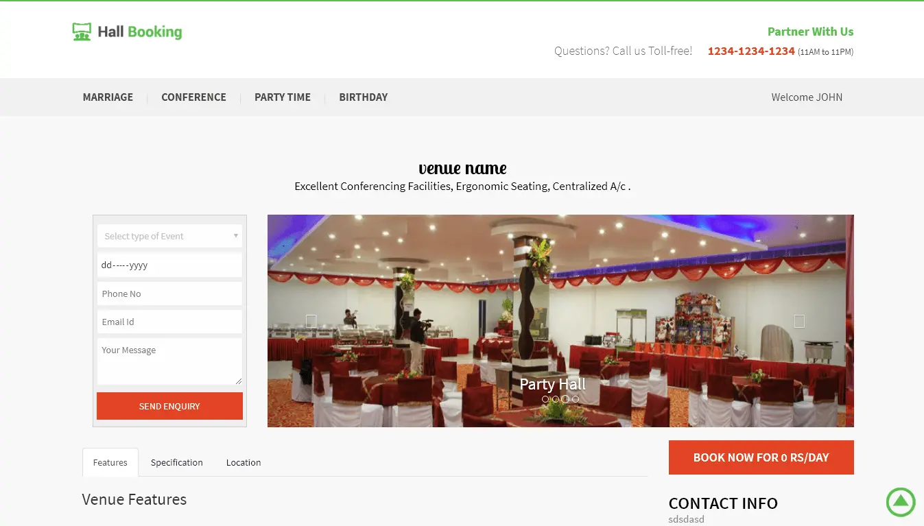 The Hall Booking System is a user-friendly platform for booking venues and event spaces. It offers a real-time view of hall availability and allows users to make bookings seamlessly from their homes. The platform includes dynamic filters to check time slots before finalizing a booking. It also features a dual-panel system for both hall owners and customers, allowing them to manage bookings, payments, and event details from the same website. Designed to handle events of all types, from conferences to social gatherings, this system ensures efficient venue management and smooth event planning.